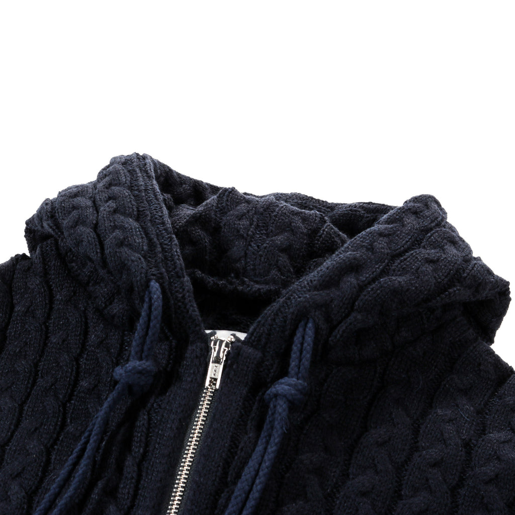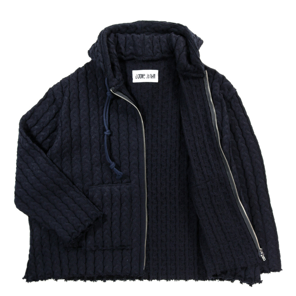 JOONE JOONAM CABLE KNIT ZIP HOODIE NAVY