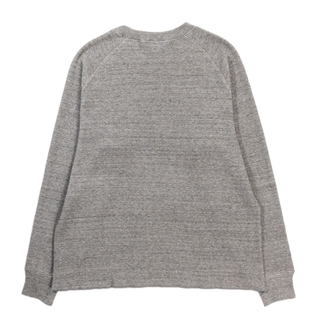THE RAGLAN THERMAL IS A BOXY LONG SLEEVE THERMAL WITH A SWEATER-LIKE FIT. CUT FROM A CUSTOM DRY 100% COTTON HONEYCOMB KNIT WITH A SLIGHTLY WIDE COLLAR AND SHORTER LENGTH. FINISHED WITH A BABY OVERLOCK HEM AND DOUBLE-NEEDLE STITCHING THROUGHOUT.