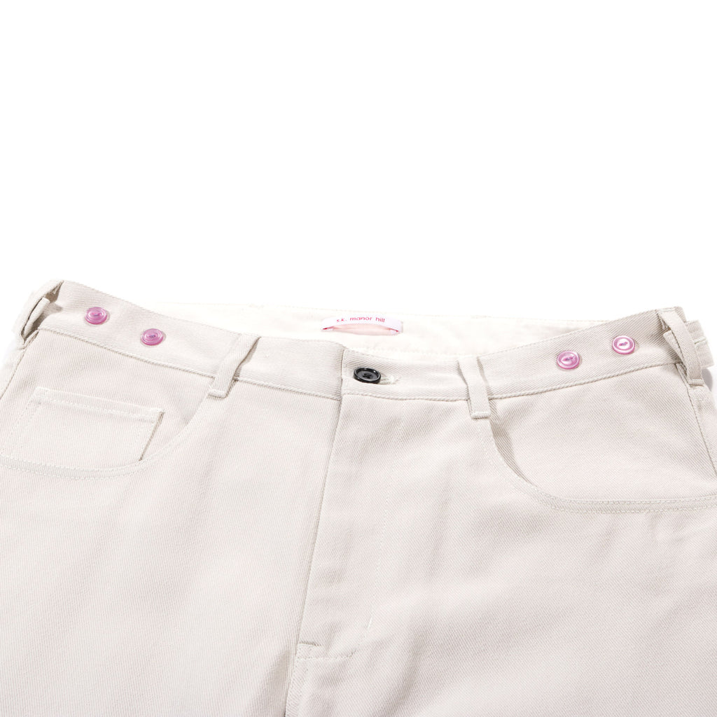 - Brushed COTTON TWILL PANT- RELAXED FIT- ADJUSTABLE BUTTON TABS AT WAIST- 100% COTTON- MADE IN USA