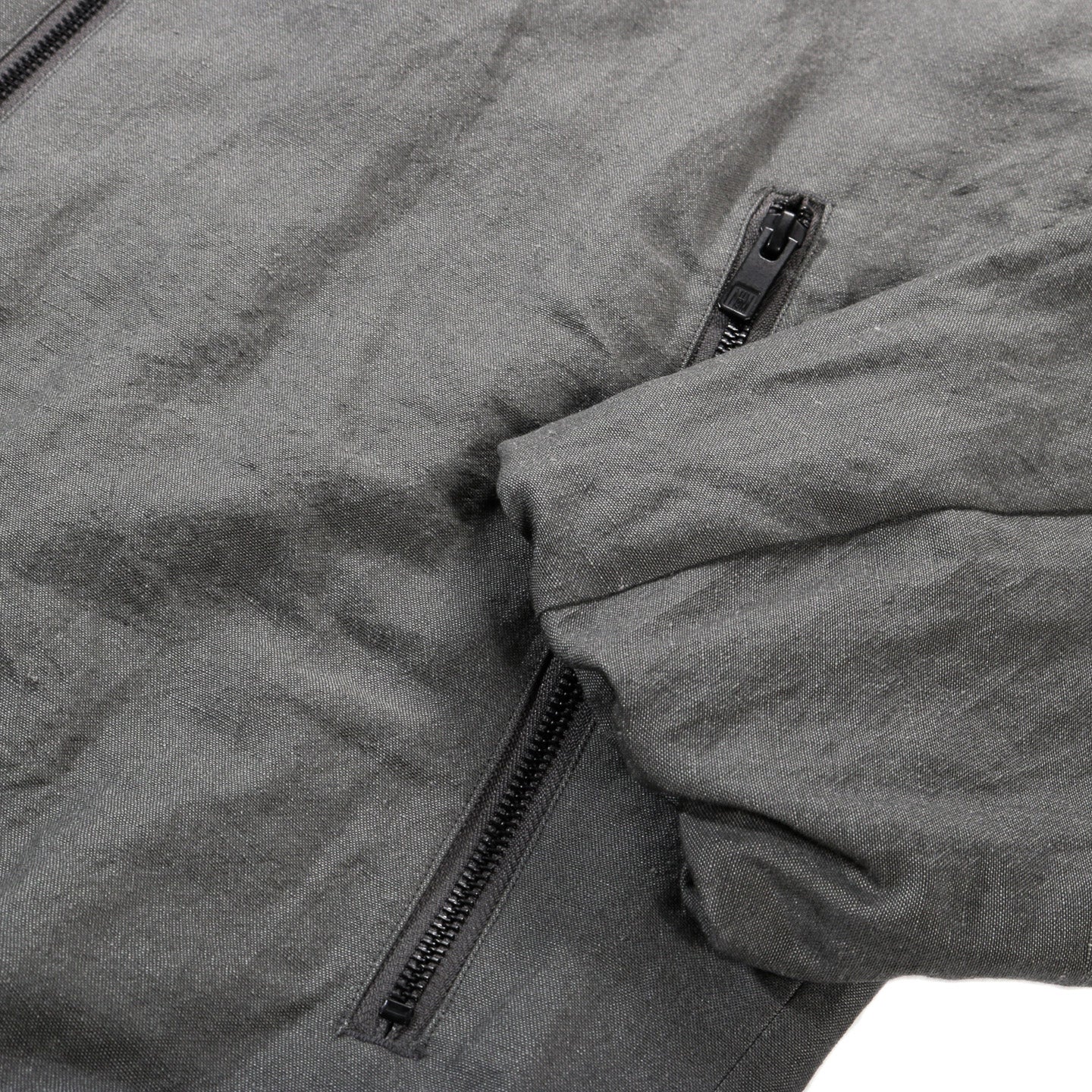 - BOXY, OVERSIZED FIT- front zip pockets- Mesh lining- elasticated cuffs and Bottom hem- 52% Wool, 48% Linen- MADE IN JAPAN