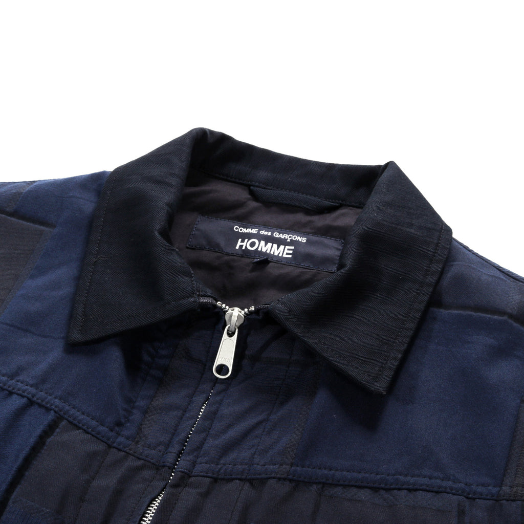 COMME DES GARCONS HOMME J018 PATCHWORK JACQUARD ZIP JACKET NAVY
