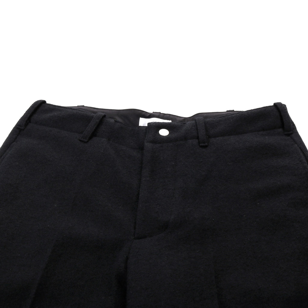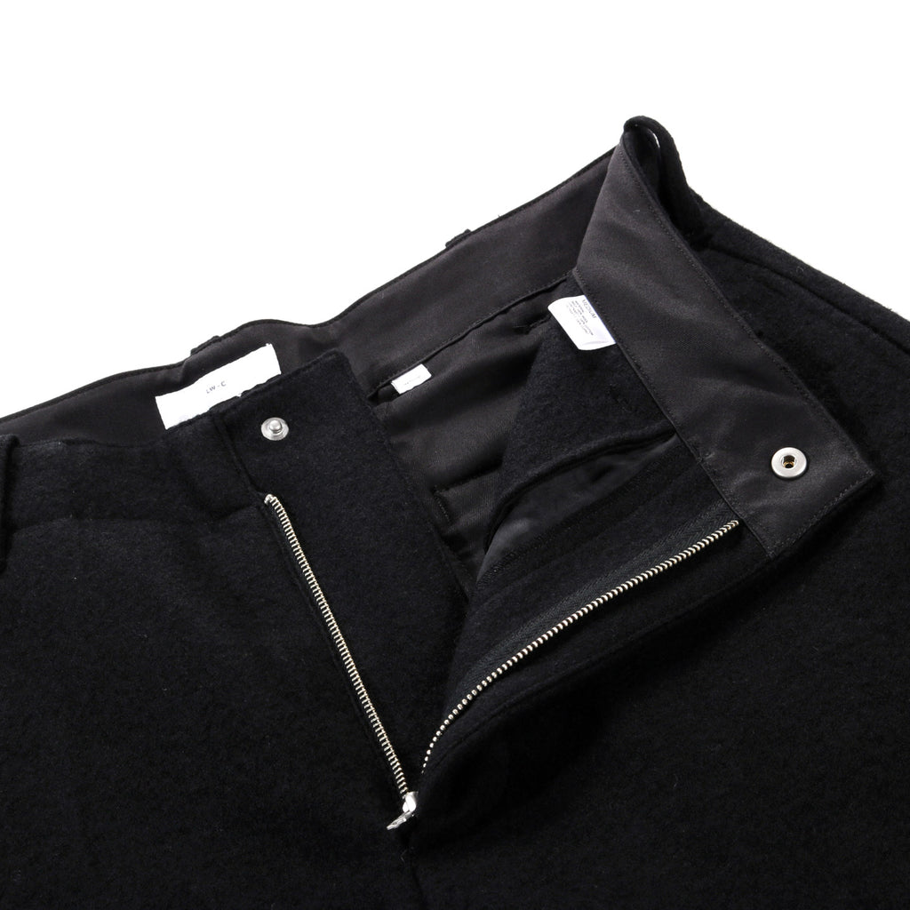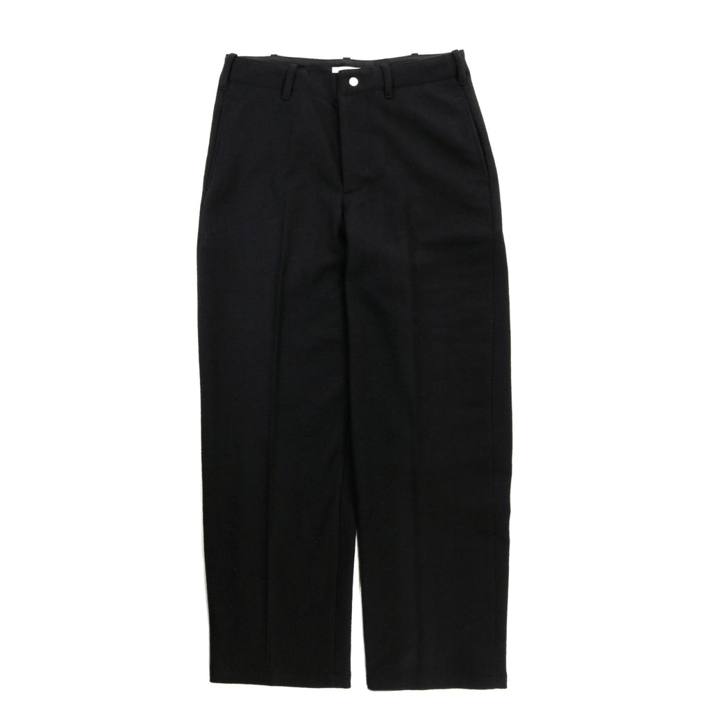 THE CRATER WOOL TROUSER IS A RELAXED, LOOSE-FITTING PANT WITH A STRAIGHT LEG. CUT FROM A HEAVYWEIGHT TEXTURED WOOL KNIT IN JAPAN, THE FABRIC'S ROOMY DRAPE IS BALANCED BY THE TAILORED, STOUT SHAPE. FINISHED WITH A PRESSED FRONT CREASE.