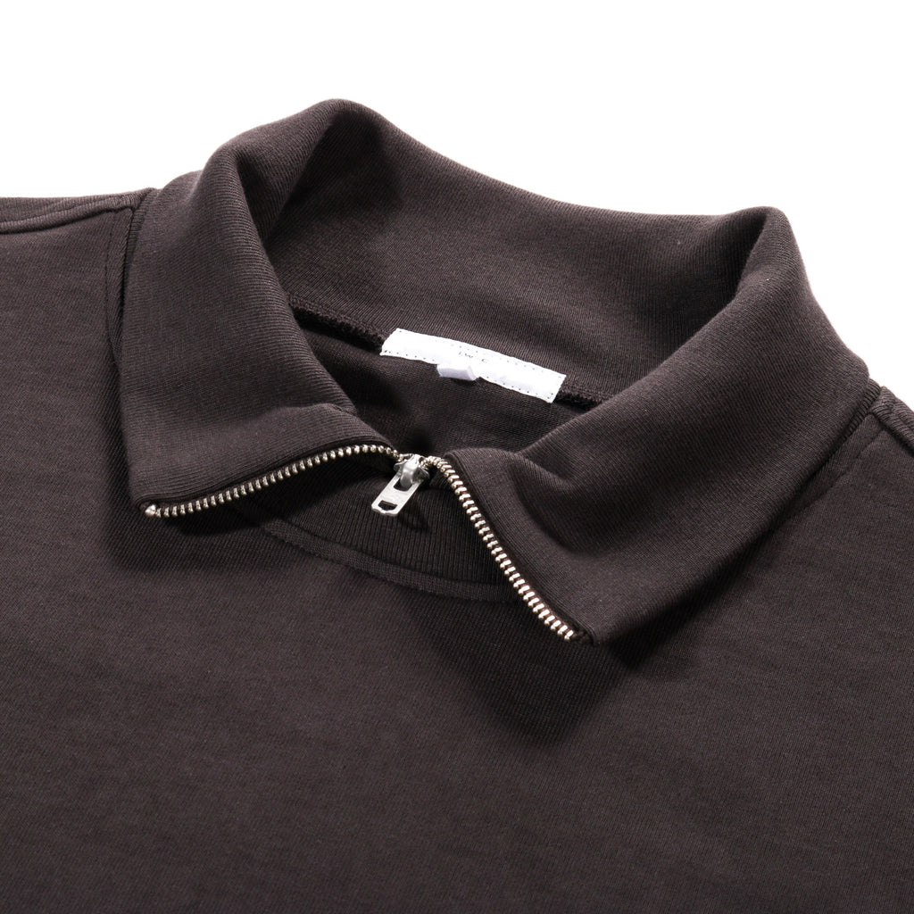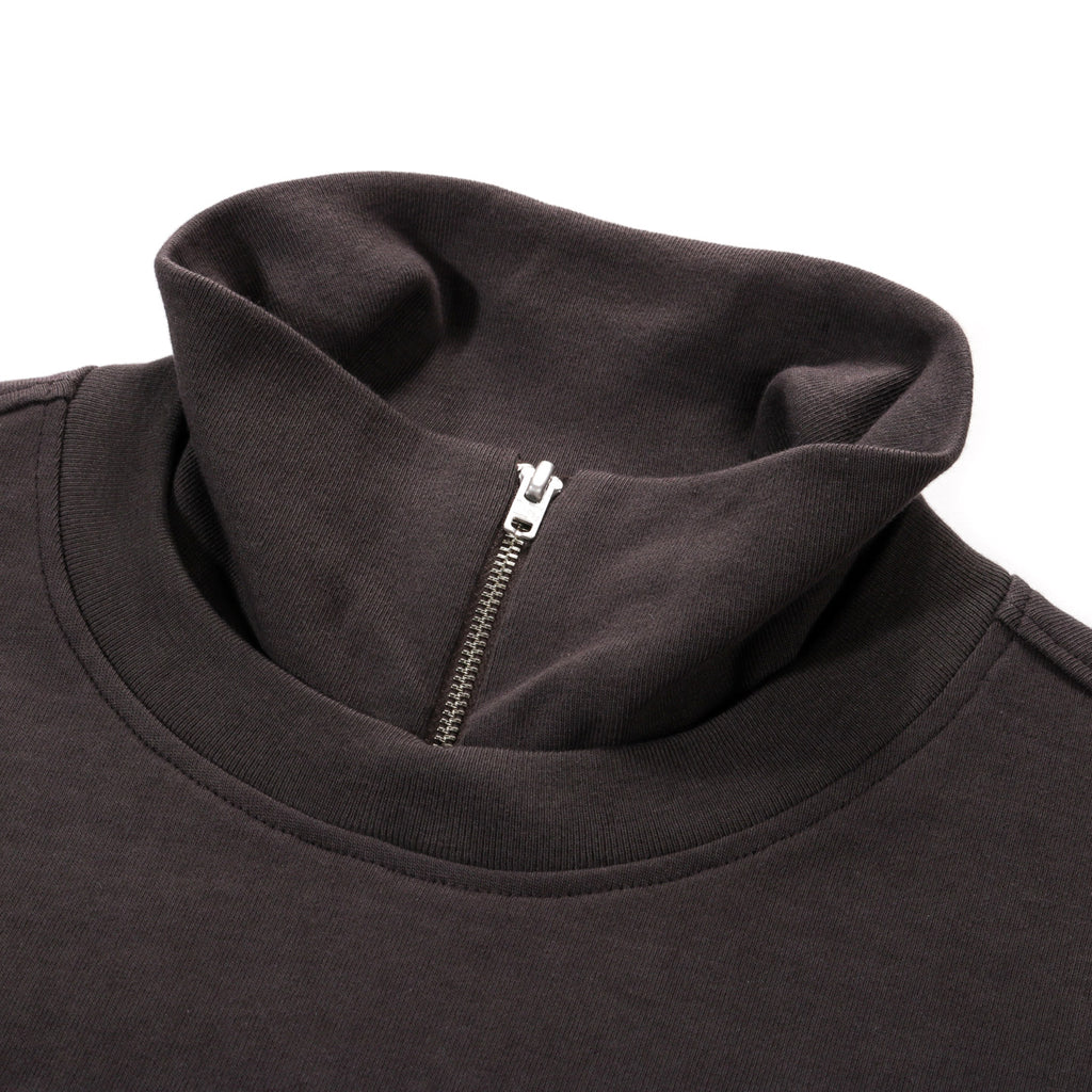 The Layered 1/4 Zip is a boxy, relaxed-fitting sweatshirt with a full mock neck zip collar. Dropped shoulders and generous armholes create a loose silhouette and allow for layering or standalone wear. Cut from our 10 oz. 100% cotton rugby jersey, the heaviest in our collection, the tightly knit and dense fabric has a smooth hand and structured drape.