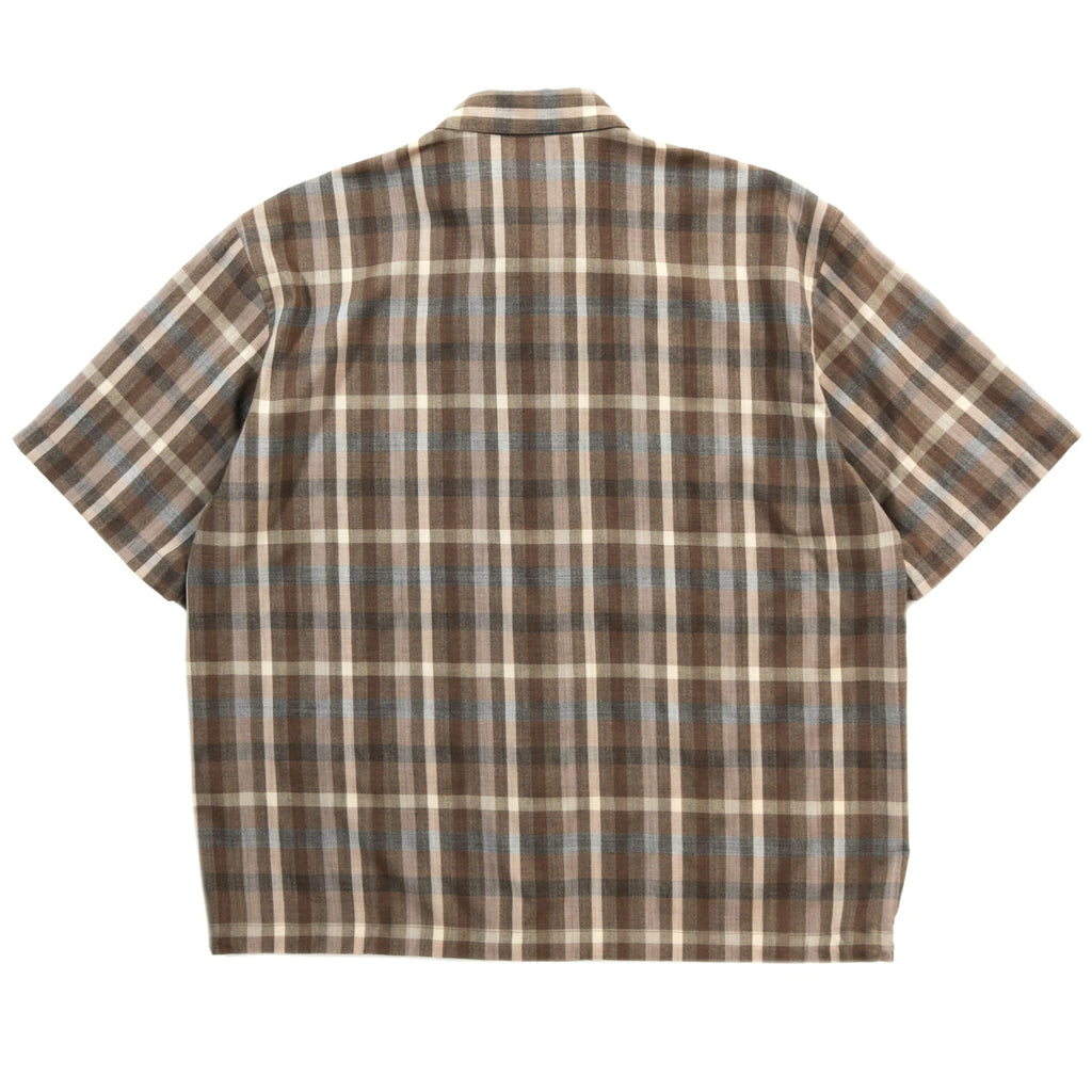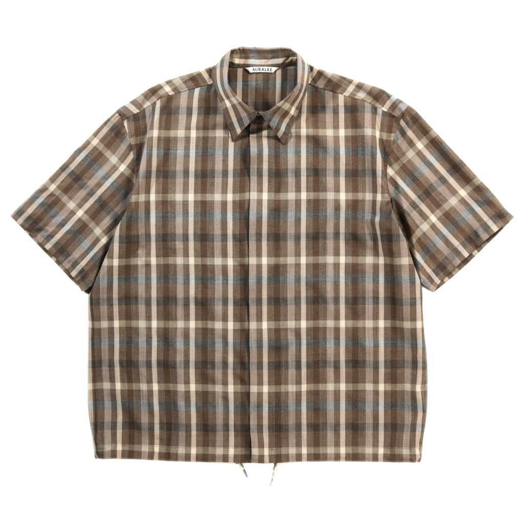 AURALEE SUPER FINE TROPICAL WOOL CHECK HALF-SLEEVED SHIRT TOP BROWN CHECK