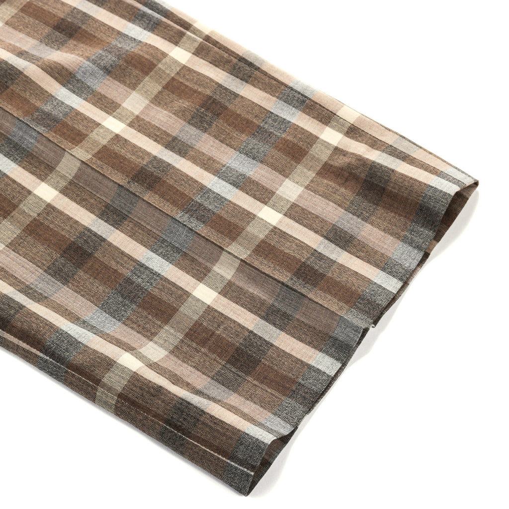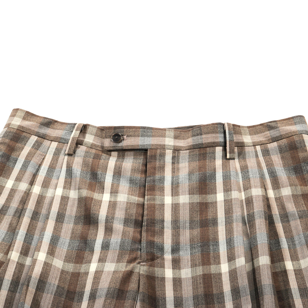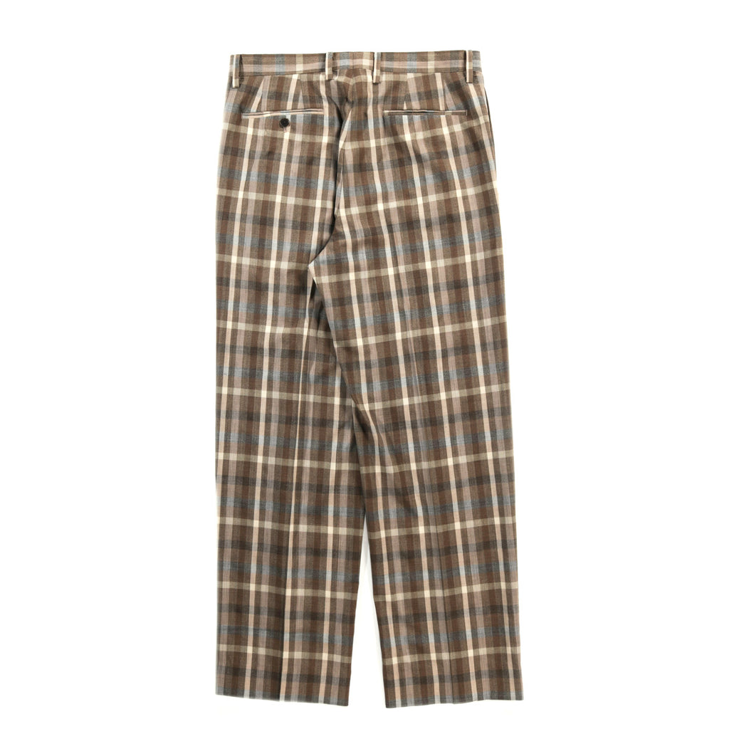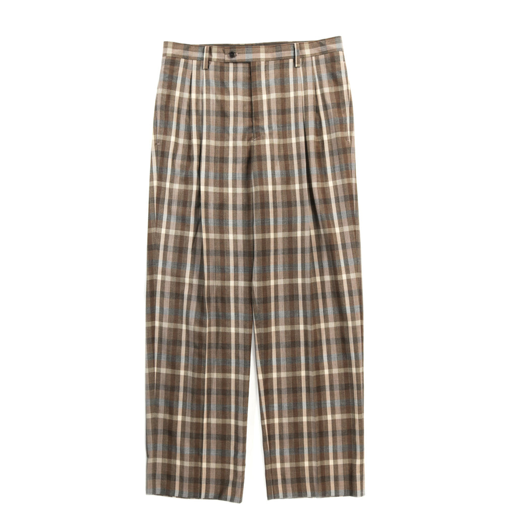 AURALEE SUPER FINE TROPICAL WOOL CHECK TWO-TUCK SLACKS TOP BROWN CHECK