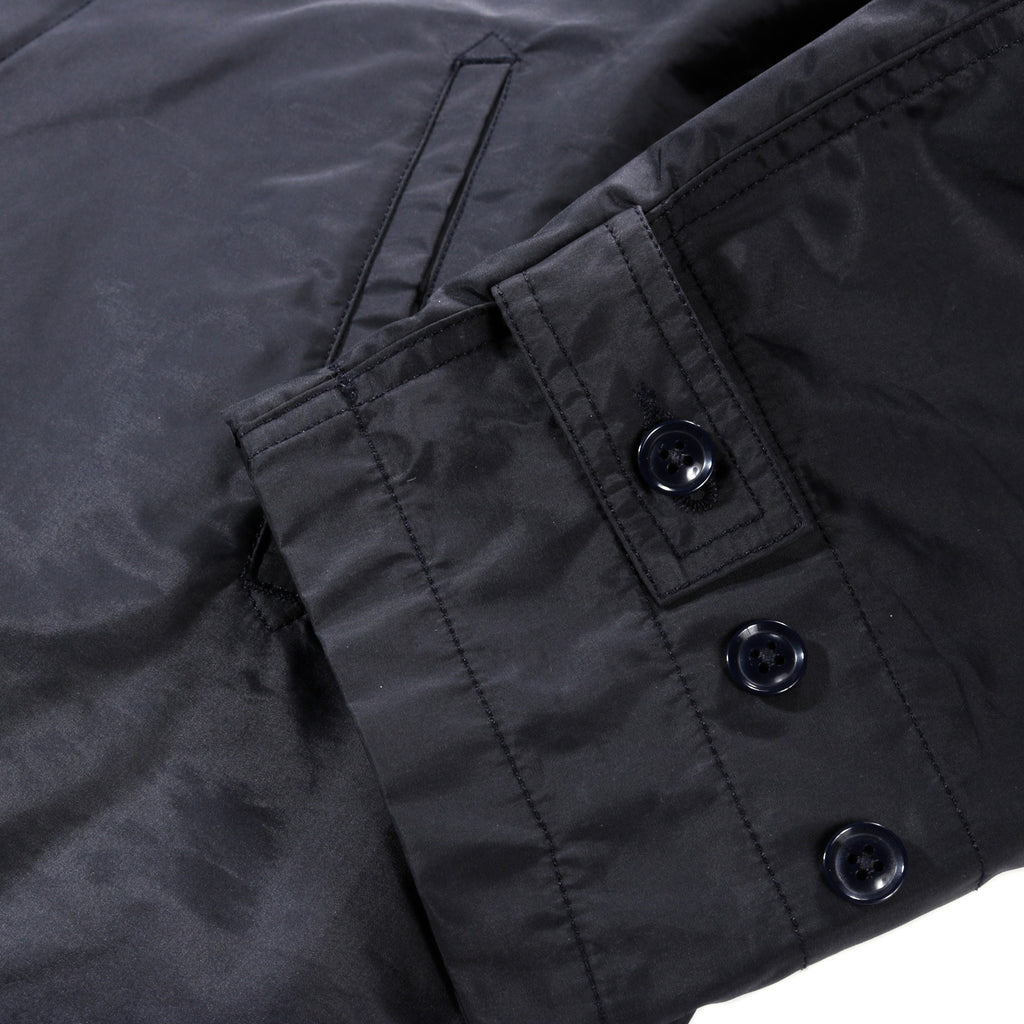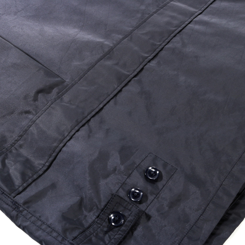 - SINGLE BREASTED OVERCOAT - 3 LAYER FABRIC - CONCEALED FRONT ZIPPER - FRONT WELT POCKETS - WIDE, OVERSIZED FIT - 100% NYLON OUTER, 100% Cotton INNER - MADE IN THE USA