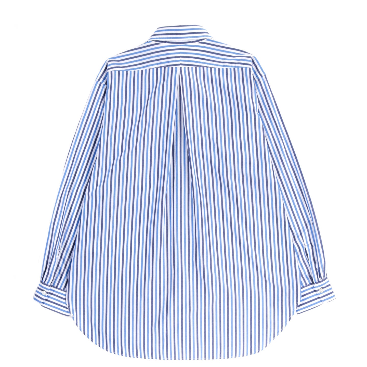 ENGINEERED GARMENTS ROUNDED COLLAR SHIRT NAVY / BLUE PIMA WIDE STRIPE