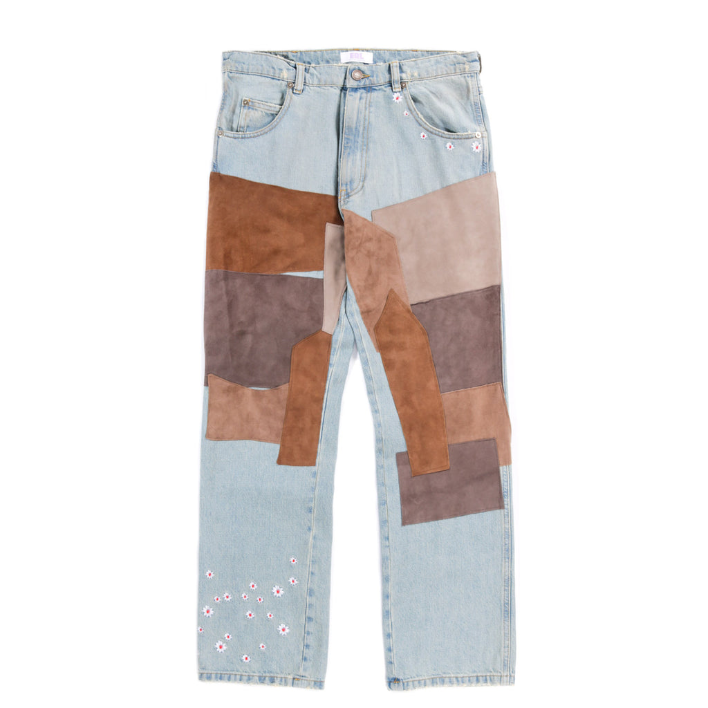 ERL LEATHER PATCHWORK JEANS LIGHT BLUE