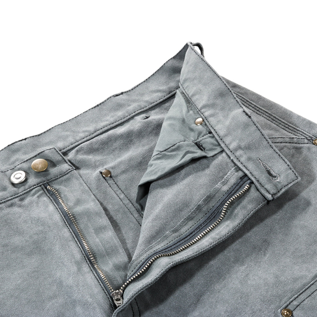 - Functional details such as knee patches, a hammer pocket, and a hammer loop