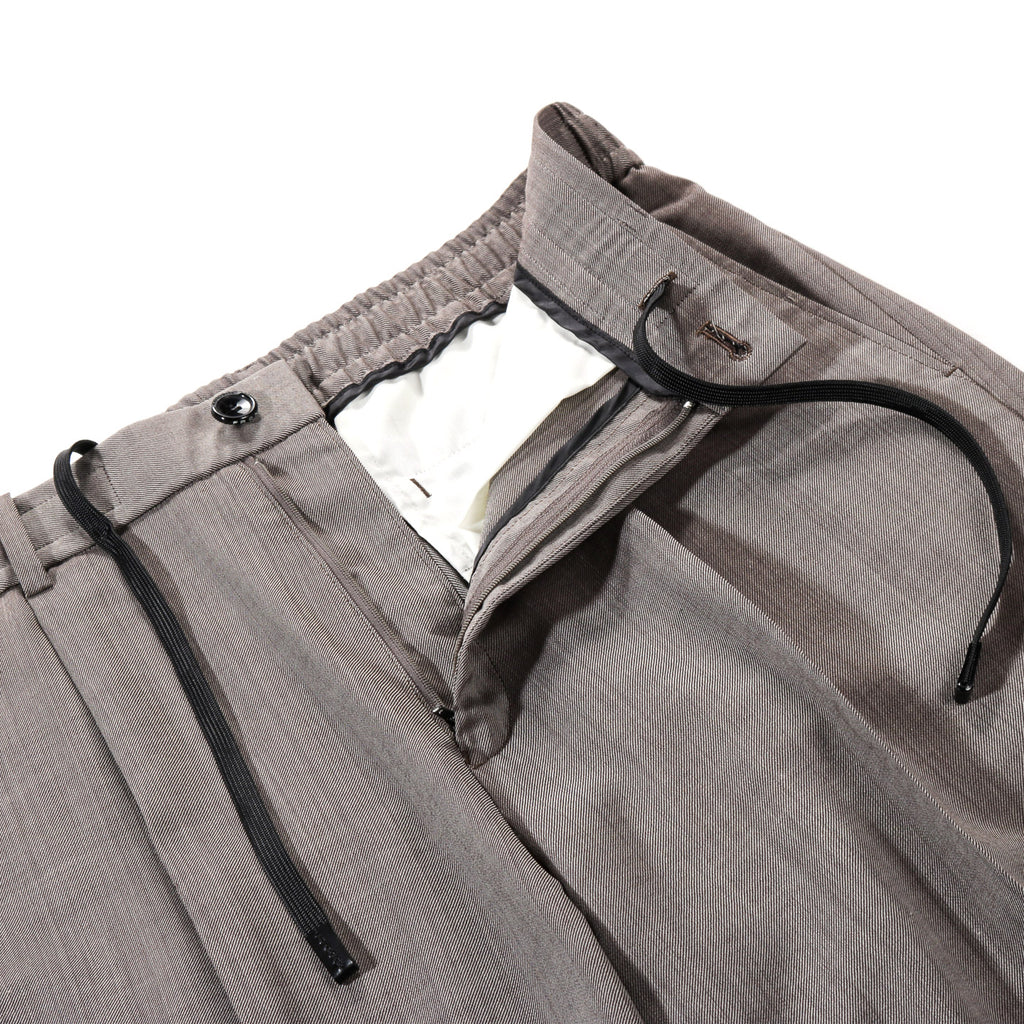 - Lightweight WOOL Poly SUITING FABRIC- ELASTICATED DRAWSTRING WAIST- STRAIGHT, RELAXED FIT - 50% WOOL, 50% Polyester- MADE IN JAPAN