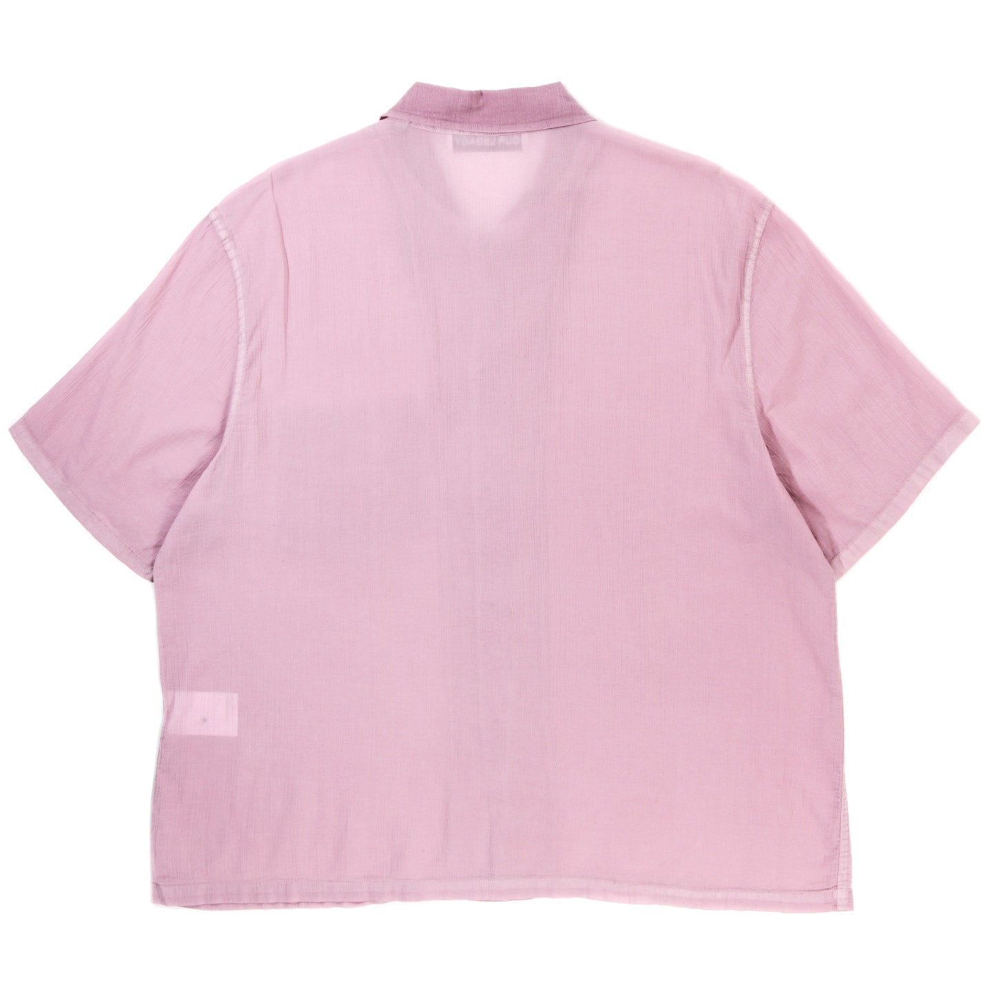 Our Legacy Box Shirt Shortsleeve in Dusty Lilac Coated Voile. Produced in a pieced dyed Italian coated voile fabric, the Box Shirt Shortsleeve has a boxy fit, and features a single chest pocket, large smoke pearl buttons and a straight hem.
