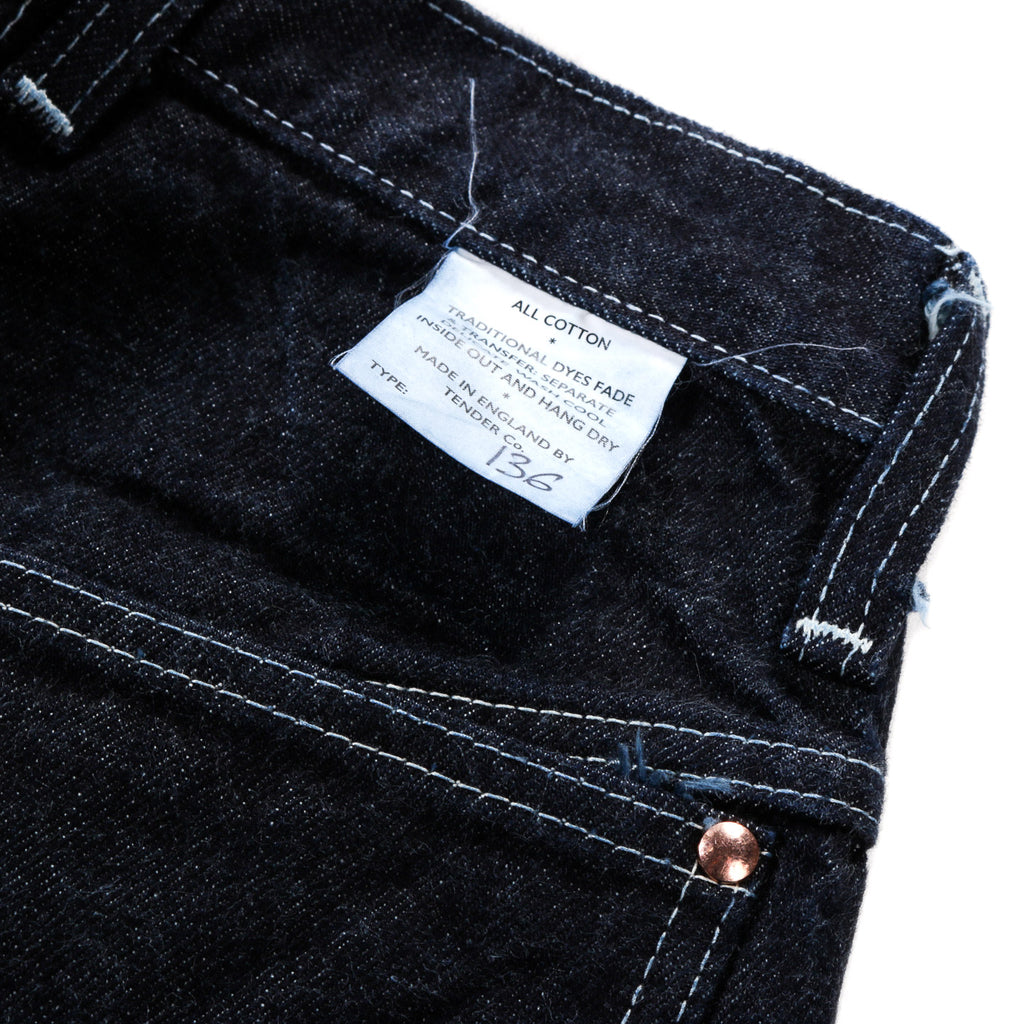 Tender’s 16oz blue-line selvage denim is custom-woven in Japan, then shipped to the UK loomstate, to be finished or cut and sewn directly.